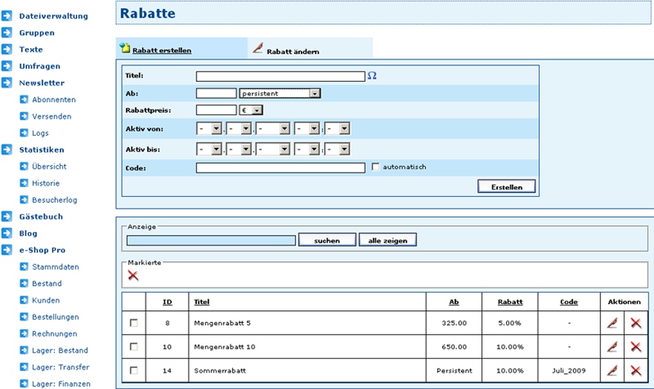| aktuell | 11:08, 28. Sep. 2009 | 950 × 565 (145 KB) | FaCossi (Diskussion | Beiträge) | In diesem Fenster können Sie die Rabatte einstellen. | |